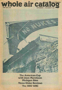 It started out as Whole Air Catalog, a newsprint publication initially intended as a reference for ultra light aviation equipment, with some informative articles. This concept evolved with more informational articles being added, and the number of pages expanded. In early 1980 (issue #12) it made the leap to Whole Air Magazine with full color printing and heavier glossy paper.