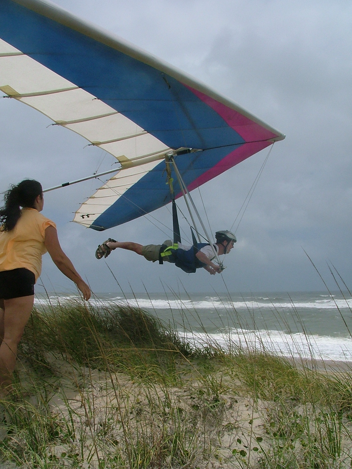 Flying strong SE breeze on Outer Banks. Shane giving new meaning to 'parking' with his wife Lucia.